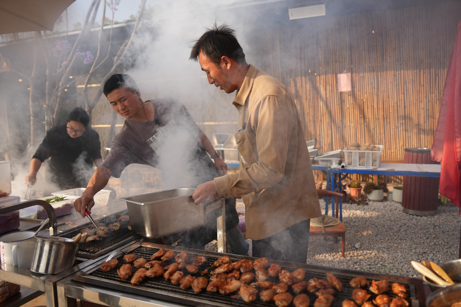 儀式過后,露天燒烤晚宴火熱開啟!美食美酒,暢敘情誼,大家盡情享受這場味覺盛宴。樂隊(duì)也從暖場伴奏轉(zhuǎn)為激情Live秀,《海闊天空》《追夢(mèng)赤子心》等經(jīng)典旋律引發(fā)全場共鳴,點(diǎn)歌環(huán)節(jié)更讓現(xiàn)場成為歡樂的海洋。