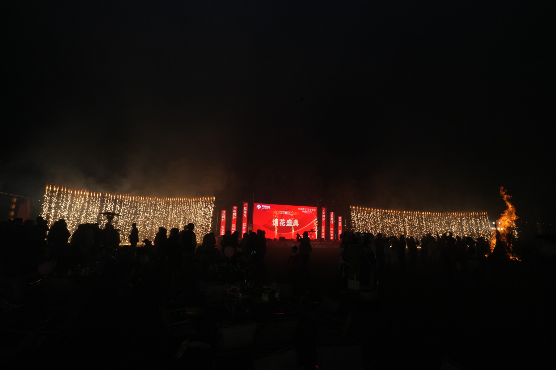 晚上七點(diǎn)半,伴隨主持人倒數(shù),一束束流光劃破夜空,絢麗的煙花層層綻放,如錦繡般鋪滿天幕。所有人共同仰望,在這璀璨時(shí)刻,許下對(duì)天度、對(duì)彼此最美好的祝愿。 煙花落幕后,篝火旁溫情延續(xù)。多位員工與嘉賓即興上臺(tái)表演,歌聲、朗誦、趣味互動(dòng)接連不斷,為夜晚增添了無數(shù)驚喜與感動(dòng)。